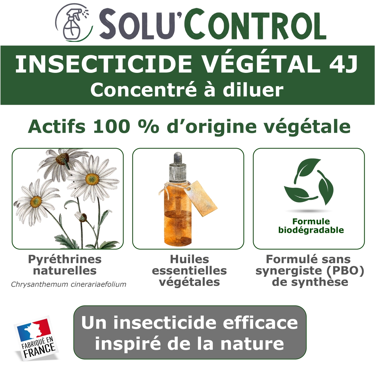 L'insecticide au pyrèthre végétale permet de lutter contre tous les insectes volants (mouches, moustiques, moucherons) et rampants (blattes, araignées, ...).